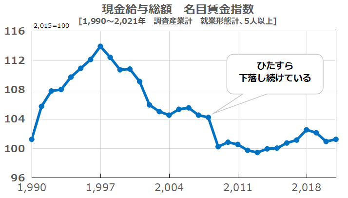 自民党が進めてきた「新自由主義的経済政策」こそが「失われた25年」の本質であり、グローバリズムがさらに金融市場と生産市場との乖離を拡大させ、国民は益々貨幣賃金の安定を得られなくなっている。為替はゼロサムであるが、国民にとっ て不利益な悪い通貨下落が生じ実質賃金を悪化させている。
